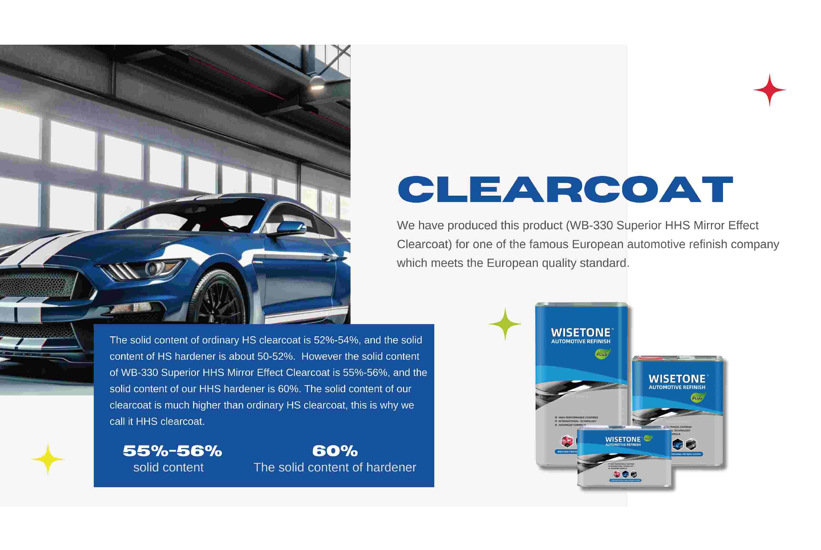 WB-800 MS Clearcoat , WB-850 HS Clearcoat , WB-5500 HS MIRROR EFFECT CLEARCOAT , WB-777 Extra Fast Clearcoat,WB-330 MIRROR EFFECT HHS Clearcoat,WB-340 Seamless HS ClearcoatOrder(MOQ) :
